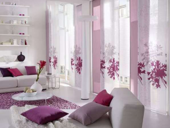 Japanilaiset verhoja silkistä tai ohut bambu ovat myös suosittuja. Uutuudet - verhot Lonet tai Suare, lamellien ja tylliyhdistelmien yhdistelmä ja luonnonmateriaaleista valmistetut kaihtimet "Wicker tree".